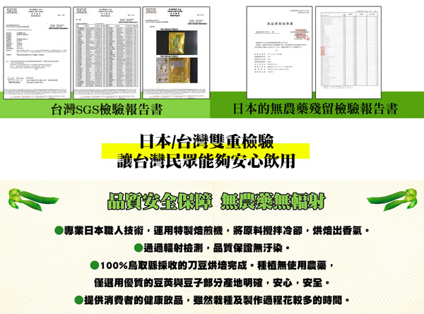 3、不含咖啡因、無漂白、通過日本與SGS檢測不含重金屬、不含農藥、無輻射、不含砷,老人小孩孕婦皆可放心飲用,常抽菸喝酒喝咖啡的民眾也非常適合。